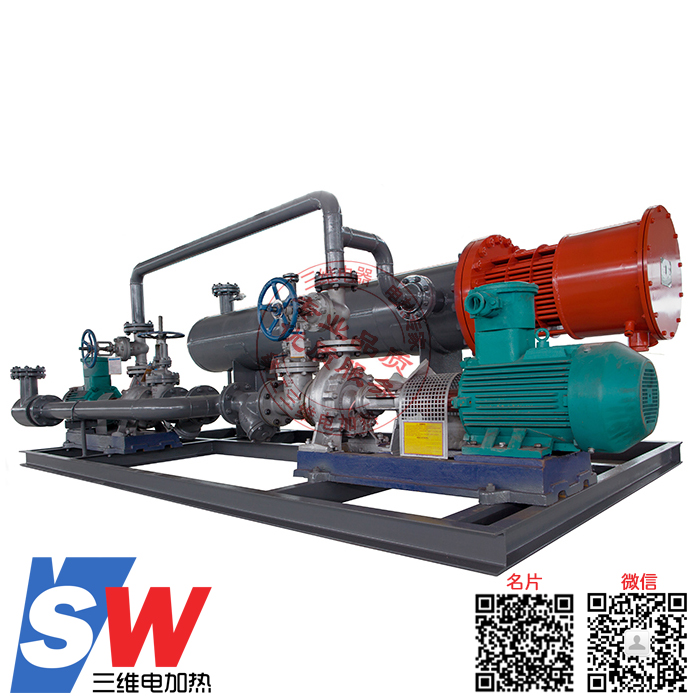 電加熱導(dǎo)熱油系統(tǒng)由防爆電加熱器、有機(jī)熱載體爐、換熱器(如有)、現(xiàn)場(chǎng)防爆操作箱、熱油泵、膨脹槽等組合成一個(gè)撬塊,用戶只僅需接入電源、介質(zhì)的進(jìn)出口管道及一些電氣接口即可使用。